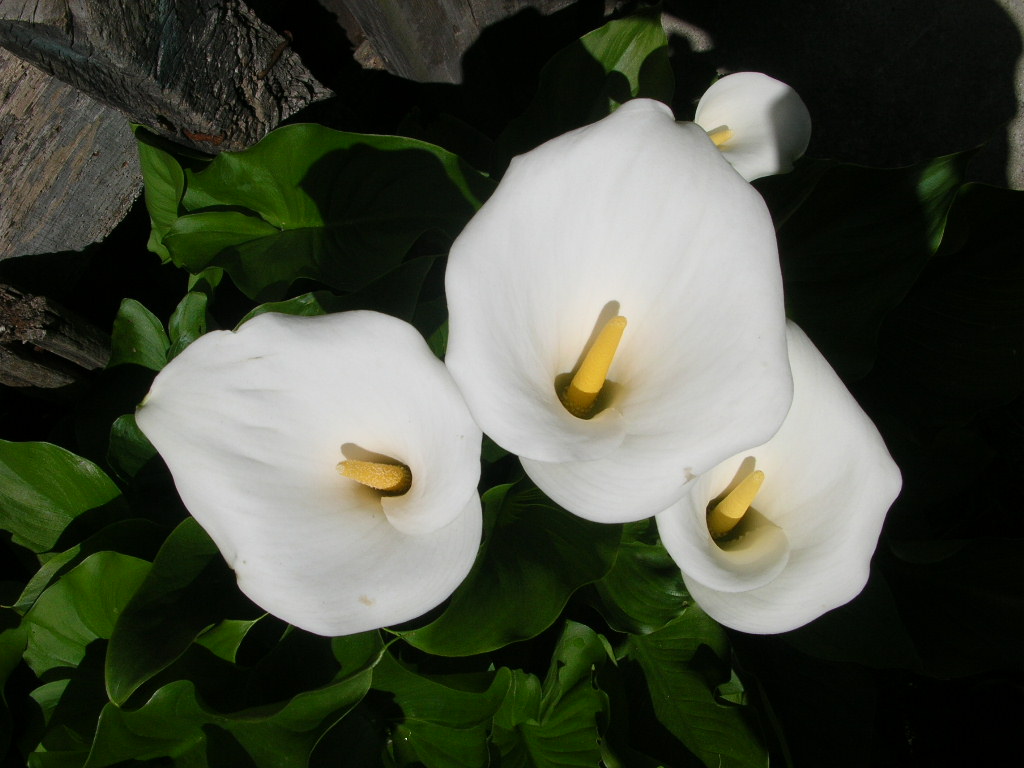 カラー。一鉢地面に植えられたものがどんどん増えて、4年でたくさん咲き誇ってます